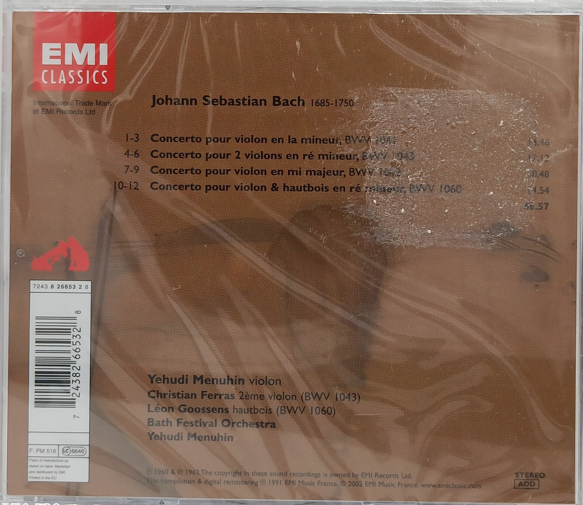 YEHUDI MENUHIN - Bach : concertos pour violon